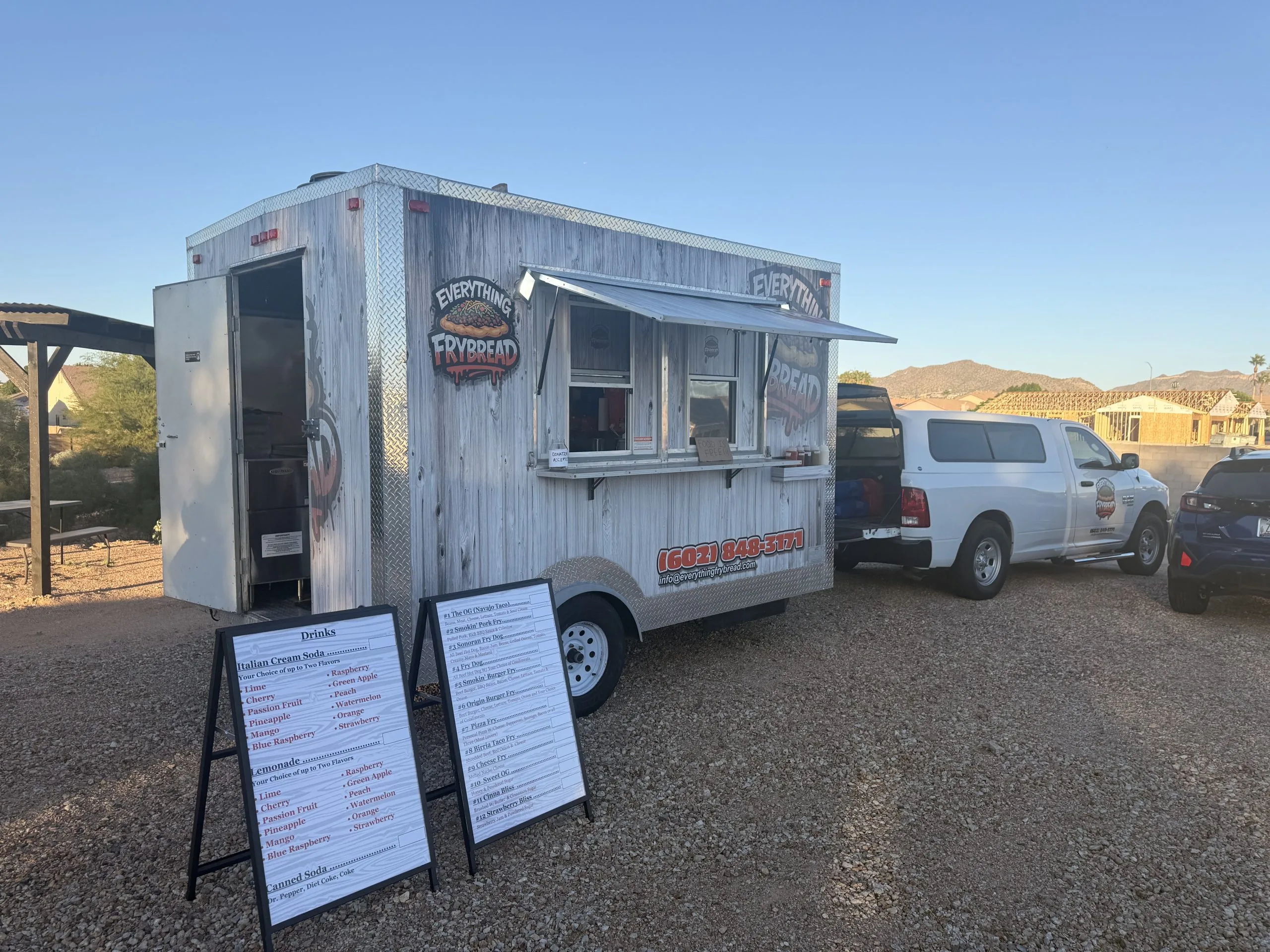 Posted on Manuel ChaparroTrustindex verifies that the original source of the review is Google. if your looking for a spot to eat at this is a spot you should go I tried their fry dog and was a good experiencePosted on Cory MillerTrustindex verifies that the original source of the review is Google. First frybread experience last weekend. It was so good we had to go back this weekend for more. Their great customer service just makes the experience even better.Posted on erica dTrustindex verifies that the original source of the review is Google. I’ve loved the honey and powdered sugar fry bread since I was a kid! I couldn’t wait to try it and it did not disappoint! I’m looking forward to going back and trying other menu items! EDIT: I’ve come back almost every night they’ve been here for this dessert fry bread!!! My kid is also very fond now!!! ❤️❤️ thank you!!!Posted on Karina MartinezTrustindex verifies that the original source of the review is Google. Tried the birria frybread and loved it!! The frybread was nice and thick and the birria actually had flavor unlike other places ive tried. Highly recommend 10/10!Posted on NicholasTrustindex verifies that the original source of the review is Google. Great food, great views, and the friendliest staff around. Give these guys a try, you won't regret it.Posted on Kristen RotariusTrustindex verifies that the original source of the review is Google. Everything Frybread is the real deal in Phoenix, Az.Posted on Benjamin ChabotTrustindex verifies that the original source of the review is Google. Yeah, this food truck is great. Super friendly staff, awesome food, and a very fun menu! Coming back for sure. I got the OG Navajo taco, and my partner got the smoking pork. Both were great.Posted on Alex (Alex)Trustindex verifies that the original source of the review is Google. So good I love the food ????Posted on Kaylan Loubriel-KrasnerTrustindex verifies that the original source of the review is Google. Best place for fry bread pizza who would have thought putting pizza on a fry bread. It was so delicious. I would recommend this place to anyone fast service great drinks as well.Posted on TonyTrustindex verifies that the original source of the review is Google. The food truck service was absolutely fantastic from start to finish. The menu offered a great variety of fresh, flavorful options that satisfied everyone. Service was quick, friendly, and well-organized. The presentation and portion sizes exceeded expectations for street food. Overall, it was a fun, delicious, and memorable dining experience that I would highly recommend.